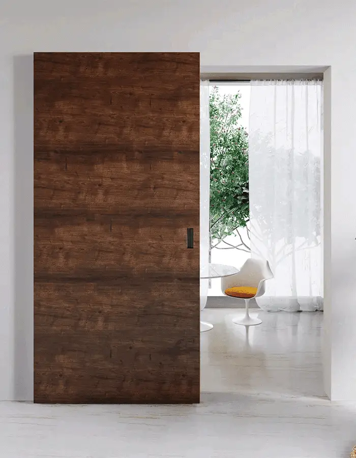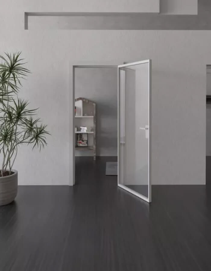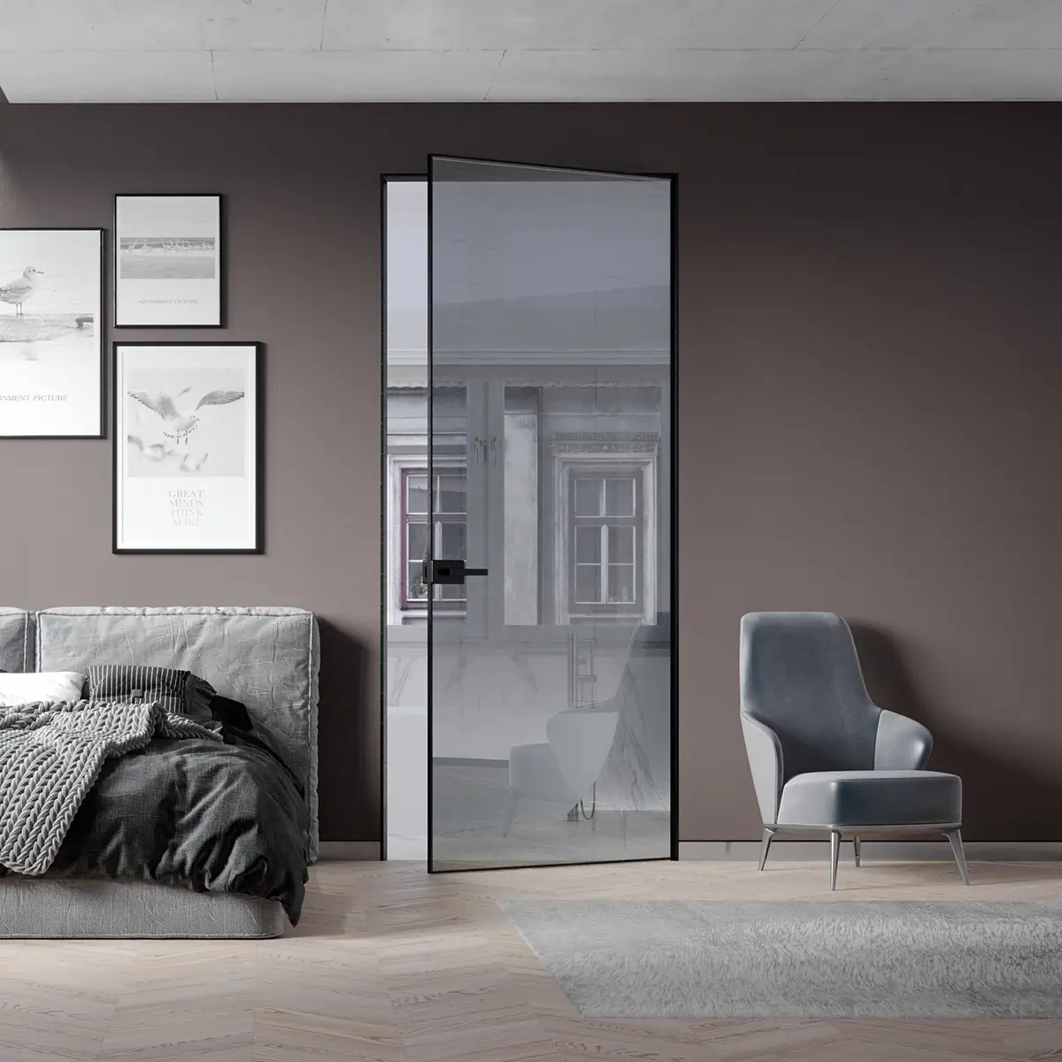 A frameless door is a modern interior door system that eliminates visible frames and trims. It sits flush with the wall, using concealed hinges and tracks for a clean, minimalist look.