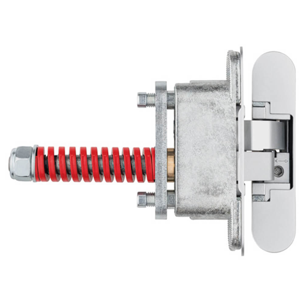 The self-closing hinge has to be used only in combination with the given hinges and has to be installed at half the height of the door leaf, approximately at the same height of the lock (magnetic lock recommended).
