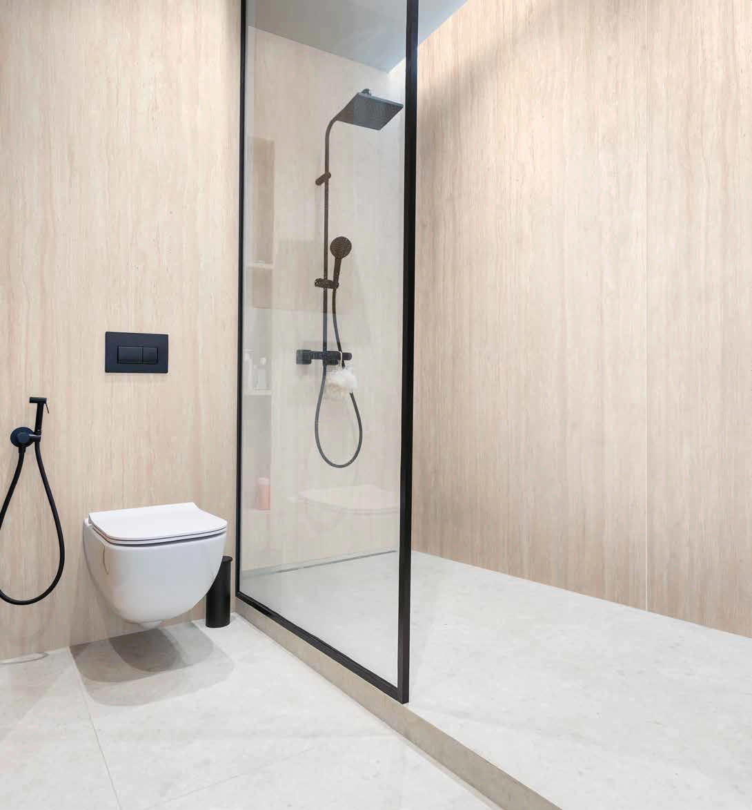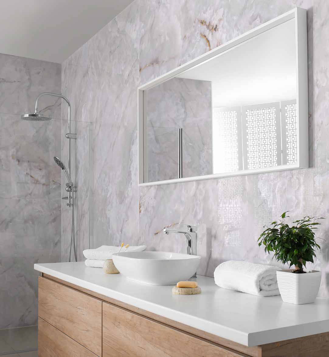 Ideal for wet areas with water-resistant, seamless surfaces.